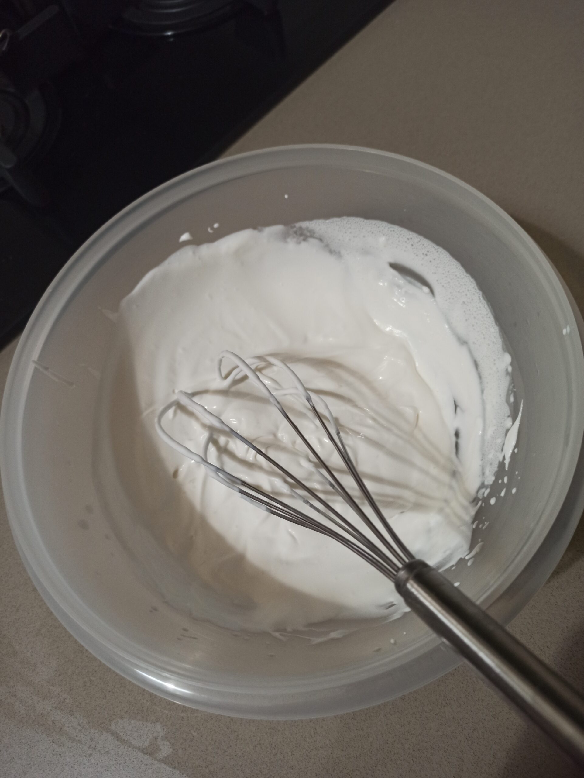 Per prima cosa montare la panna ben ferma e mettere a bagno i fogli di gelatina per 10 minuti in acqua fredda.